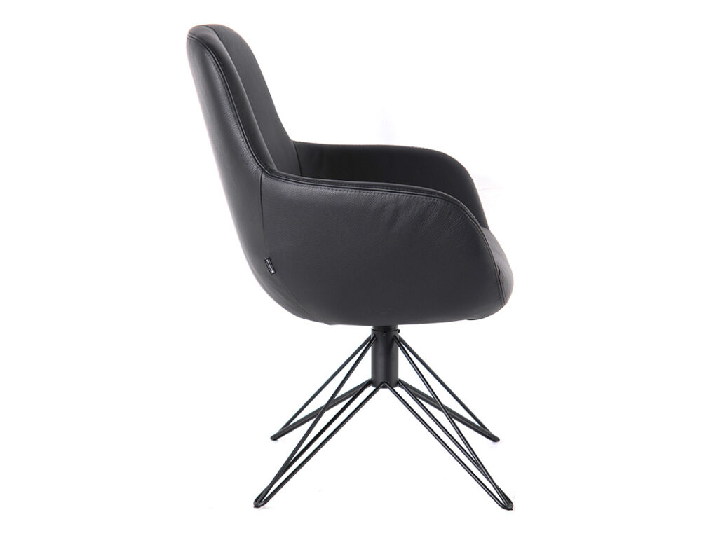Durch die filigran geschwungene Flügelarmlehne des Sessels entsteht eine Elganz, welche durch die feinen Linien der Sitzschale perfekt unterstützt wird.