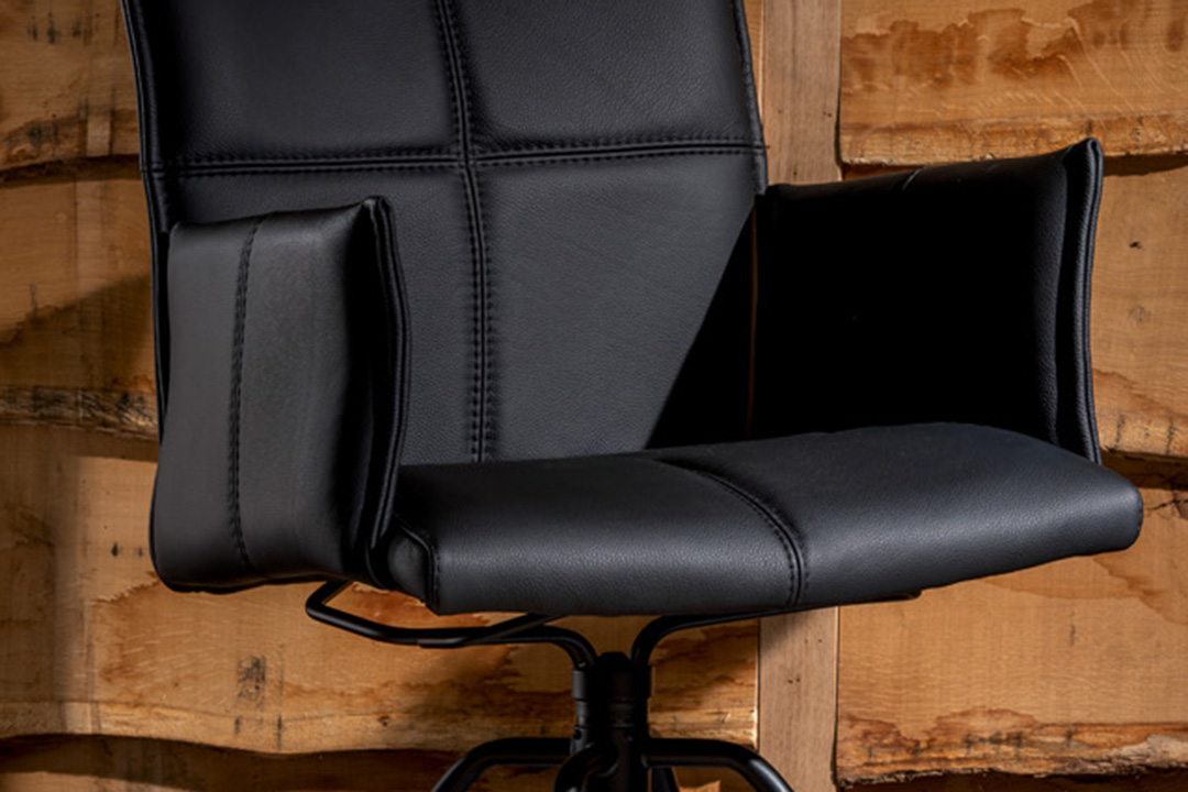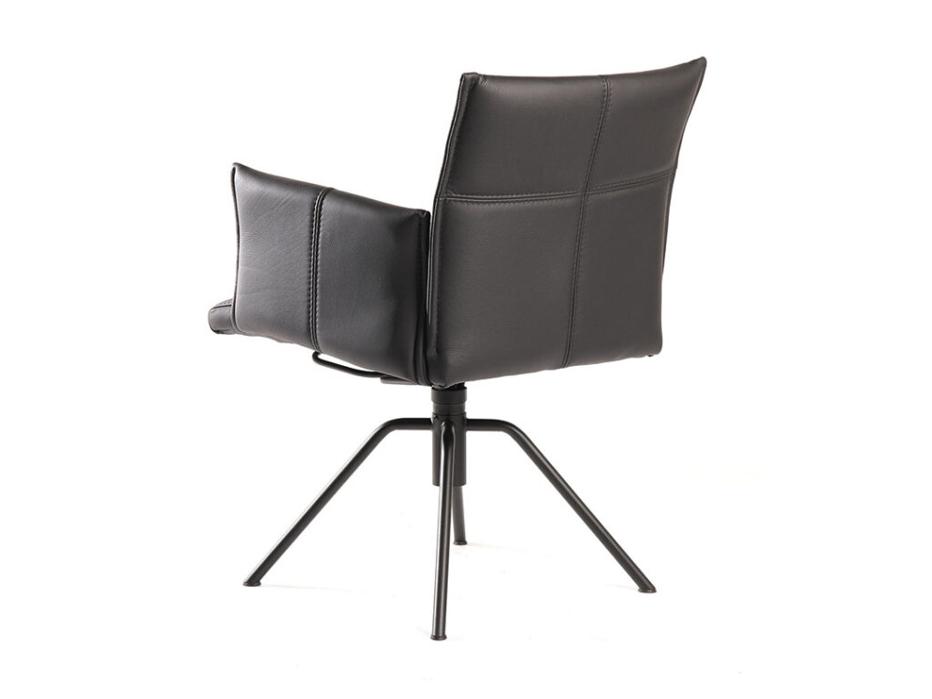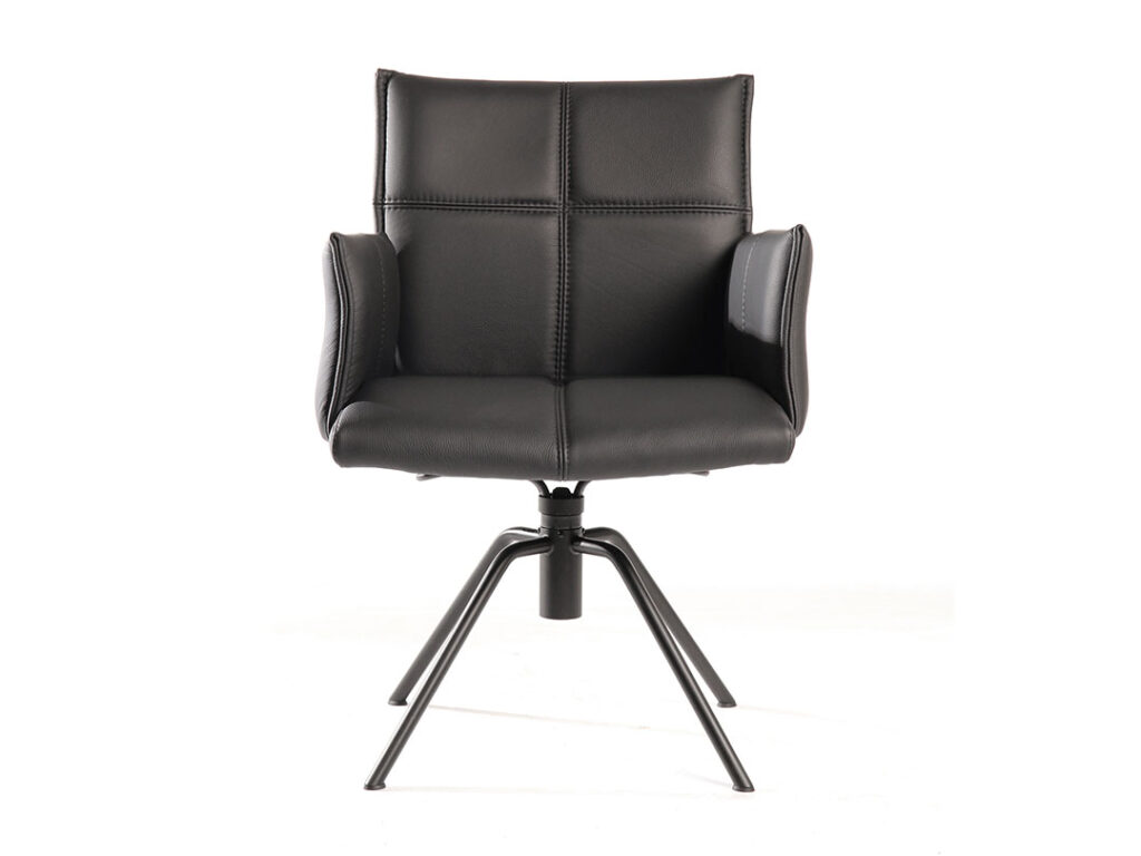 Sitz, Rücken und Armlehnen verfügen über eine moderne Kreuznaht. Optional gibt es die Kreuznaht auch mit Kontrastfaden in den Farben weiß, hellgrau anthrazit oder schwarz. Auf Wunsch kann HENRI auch ohne Ziernaht gefertigt werden.
