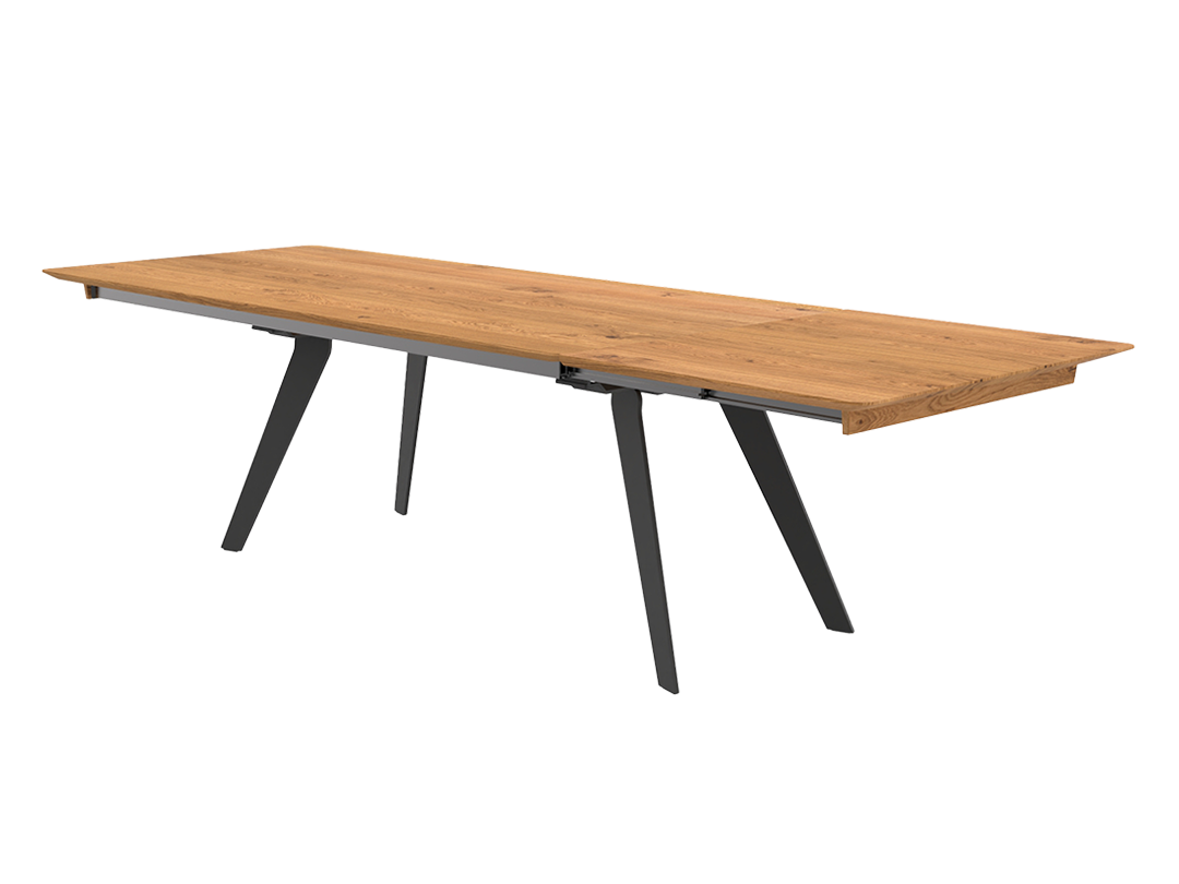 Tischauszug: bis 240 cm möglich, Synchronauszug mit 80 cm Klappeneinlage, weitere Auszugsgrößen im 5-cm-Raster zwischen 60 und 100 cm auf Wunsch möglich