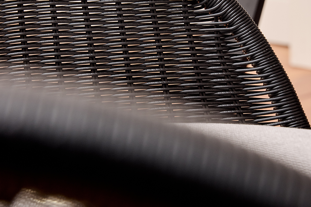 Das fein gearbeitete Geflecht – wahlweise im Kunstgeflecht Amina oder im Naturgeflecht Boondoot – sorgt für Transparenz und eine warme Ausstrahlung.